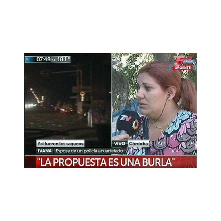 "Lo que pasó es indescriptible. A esto se enfrentan nuestros policías por un sueldo de 5000 pesos", aseguró Ivana, esposa de uno de los efectivos acuartelados, en referencia a los saqueos y destrozos que se están viviendo desde la tarde del martes en Córdoba.