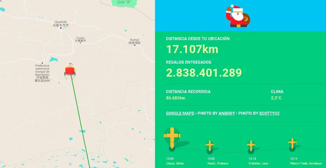 En tiempos en donde la tecnología tiene un lugar preponderante en nuestras vidas, la original aplicación ofrece información sobre la cantidad de presentes entregados, la distancia recorrida por el trineo, los kilómetros que todavía le resta cubrir para cumplir con su misión anual y hasta el clima que debe enfrentar en cada uno de los puntos del mundo a los que llega.