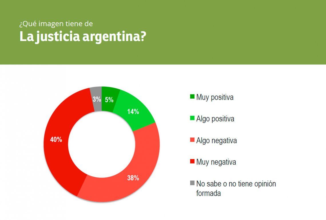 El 78 por ciento de las 1.000 personas consultadas sostuvo que la imagen del tercer poder es “algo negativa” (38%) o “muy negativa” (40%). El estudio fue realizado telefónicamente y analizó cuáles son los principales problemas del área: qué aspectos deberían mejorarse, la corrupción y si resuelve (o no) las principales preocupaciones de la población.