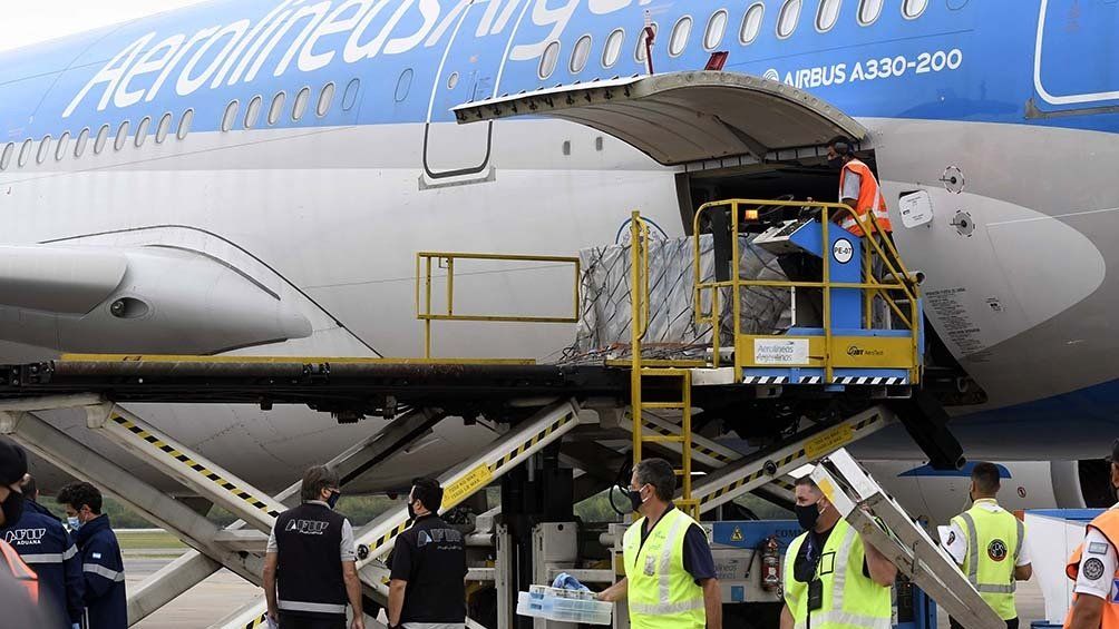 Aerolíneas Argentinas inició sus vuelos a Moscú para la provisión de vacunas a fines de diciembre de 2020 y en los dos primeros vuelos llegaron al país 600.000 dosis de Sputnik V, mientras que en el tercero llegaron 220.000 vacunas.