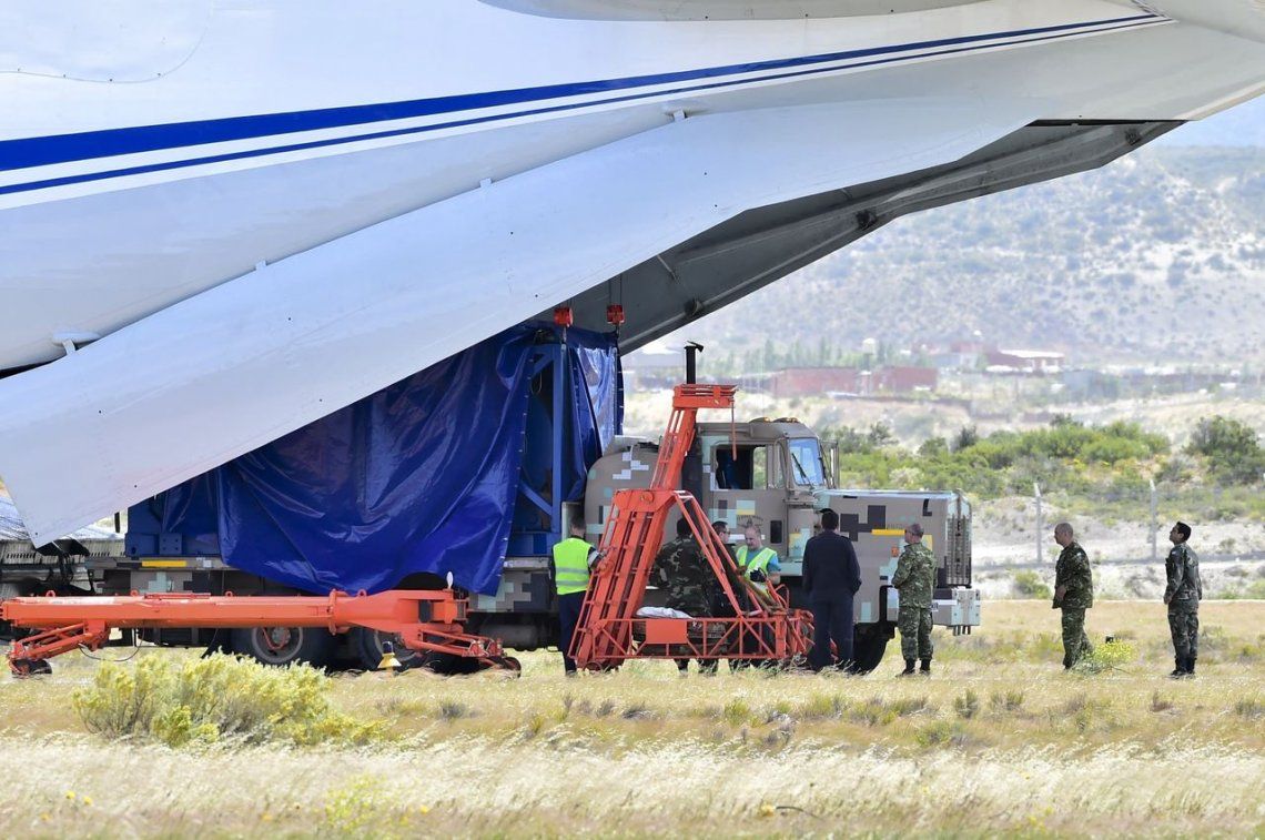 Fuentes del Ejército locales indicaron a Télam que los materiales bajados del avión ruso Antonov están en custodia militar hasta que reciban la orden de trasladarlos al puerto indicado.