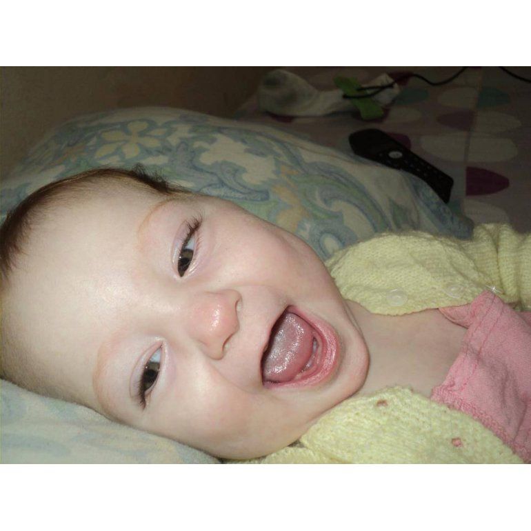 Por suerte, la parálisis cerebral que le ocasionó haber nacido prematura, a seis meses de gestación y con un poquito más de un kilo de peso, no le impide reírse. Ni tener ese brillante y rojizo cabello que le cubre la cabecita.
