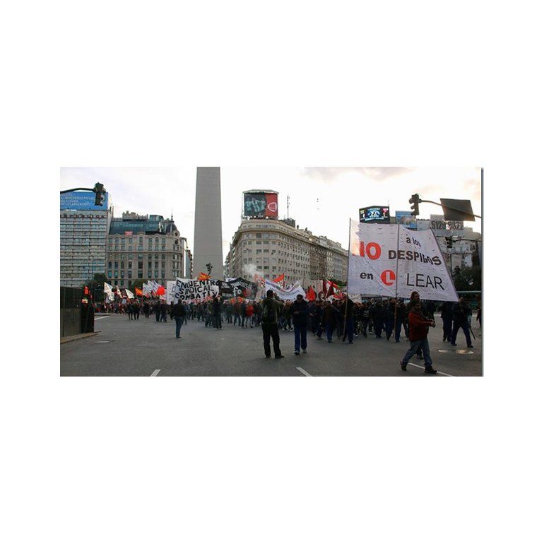 Los trabajadores de Lear se concentran en el Obelisco, en una nueva jornada de lucha, para reclamar la reincorporación de los despedidos.