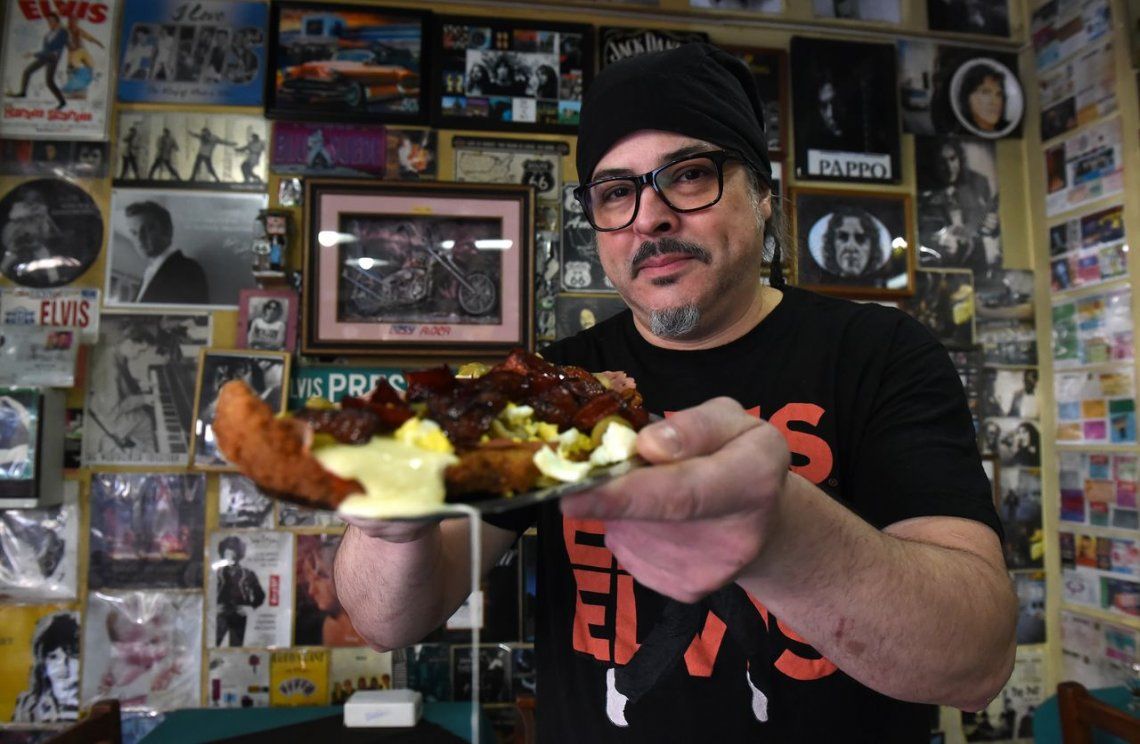 Con tan sólo dar un paso dentro del local regenteado por este verdadero héroe de la carne con pan rallado, uno se da cuenta que, además de aceite, en esas cuatro paredes se respira rock and roll. “Lo decoré así porque esta música es la pasión de toda mi vida”, dice Meza acerca de los cientos de afiches, posters, tapas de vinilos, muñecos y demás memorabilia que cubren casi por completo el lugar. “Y acá mucha gente entró por primera vez por la decoración. Después se encontró con que comió bien y se me hizo habitué”, cuenta, a la vez que repasa nombres como los de Javier Malosetti, Miguel Ángel Tallarita (trompetista de La Beriso y el Indio Solari), Toti Iglesias y el resto de los Jóvenes Pordioseros, Sarcófago de Los Ratones Paranoicos. Rubén Rada y Diego Capusotto entre su clientela más “notable”.
