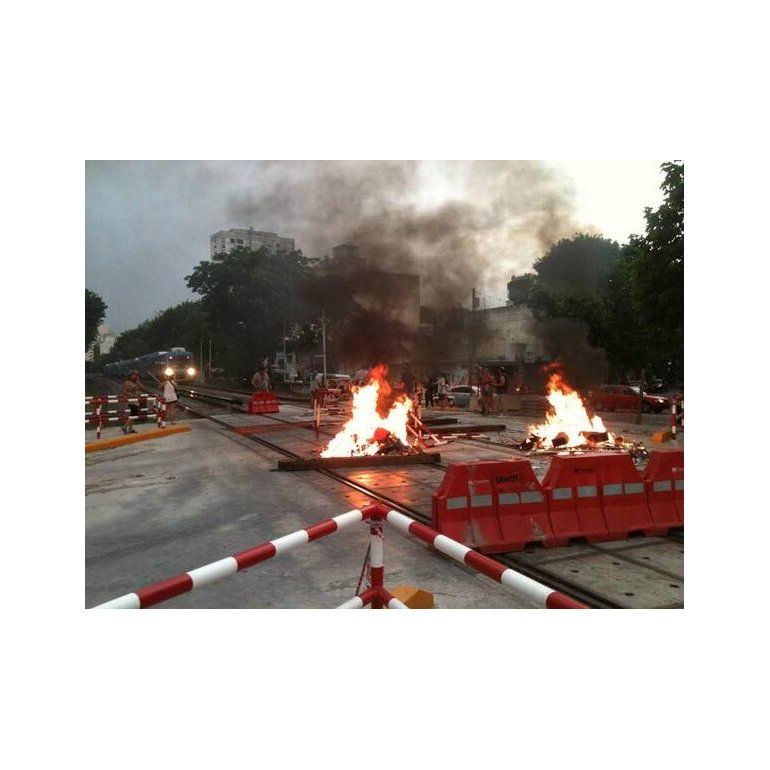Vecinos del barrio porteño de Flores realizaban esta noche un corte sobre las vías del tren Sarmiento a la altura del paso a nivel de la calle Carrasco en protesta por falta de electricidad.