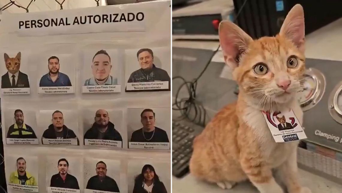 En México, “Miauricio”, un felino naranja, fue incorporado oficialmente a una empresa para acompañar y aliviar el estrés de los empleados con su presencia.