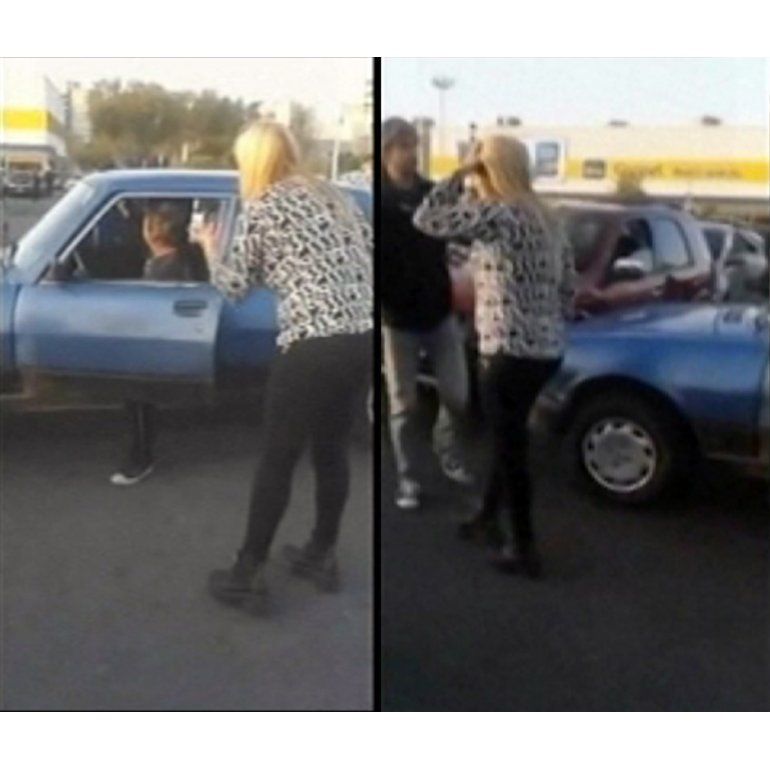 Ante la violenta escena, la pareja de la agresora intentó calmarla debido a que el impacto que recibió su vehículo fue menor, pero no pudo apaciguar su deseo de ajusticiar al otro conductor y comenzó a magullar el auto.