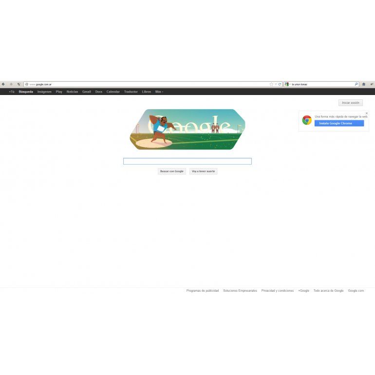 Desde el inicio de los Juegos Olímpicos, el popular buscador Google renueva diariamente su doodle con actividades de Londres 2012 y para hoy eligió lanzamiento de bala con mucha semejanza al argentino finalista Germán Lauro.