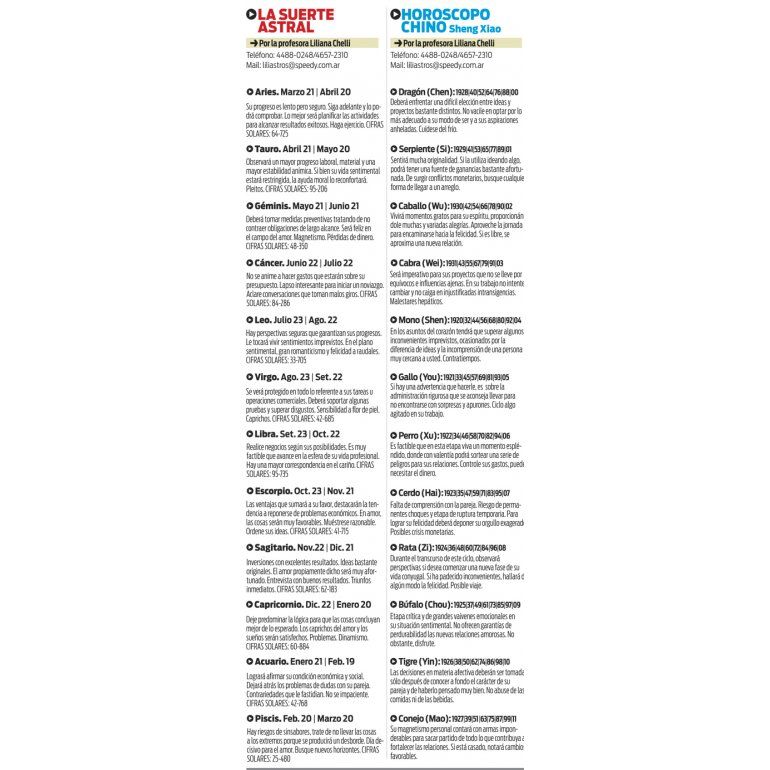 Astrología Consulta el horóscopo chino del sábado 4 de abril Consultá todo lo que tienen deparado los animales del horóscopo chino para vos en este día.
