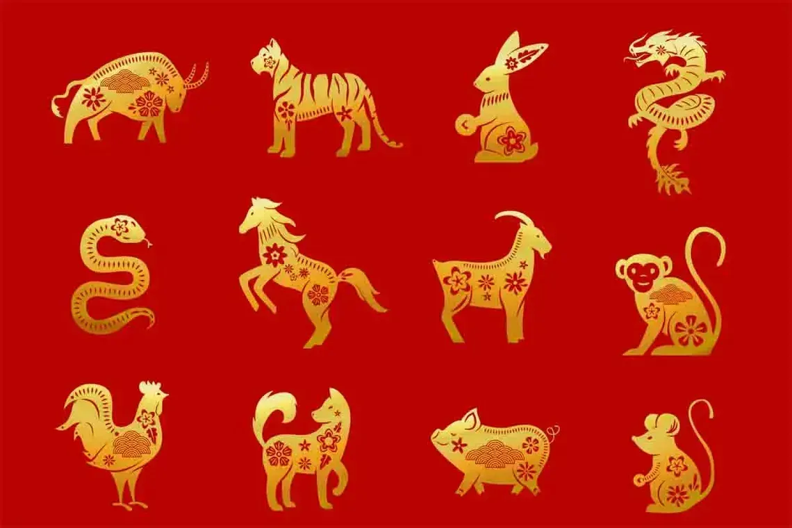 Estos son Rata, Búfalo (o Buey), Tigre, Conejo, Dragón, Serpiente, Caballo, Cabra, Mono, Gallo, Perro y Cerdo. Cada uno de ellos posee un elemento que puede ser Metal (u Oro), Aire, Fuego, Tierra y Agua.
