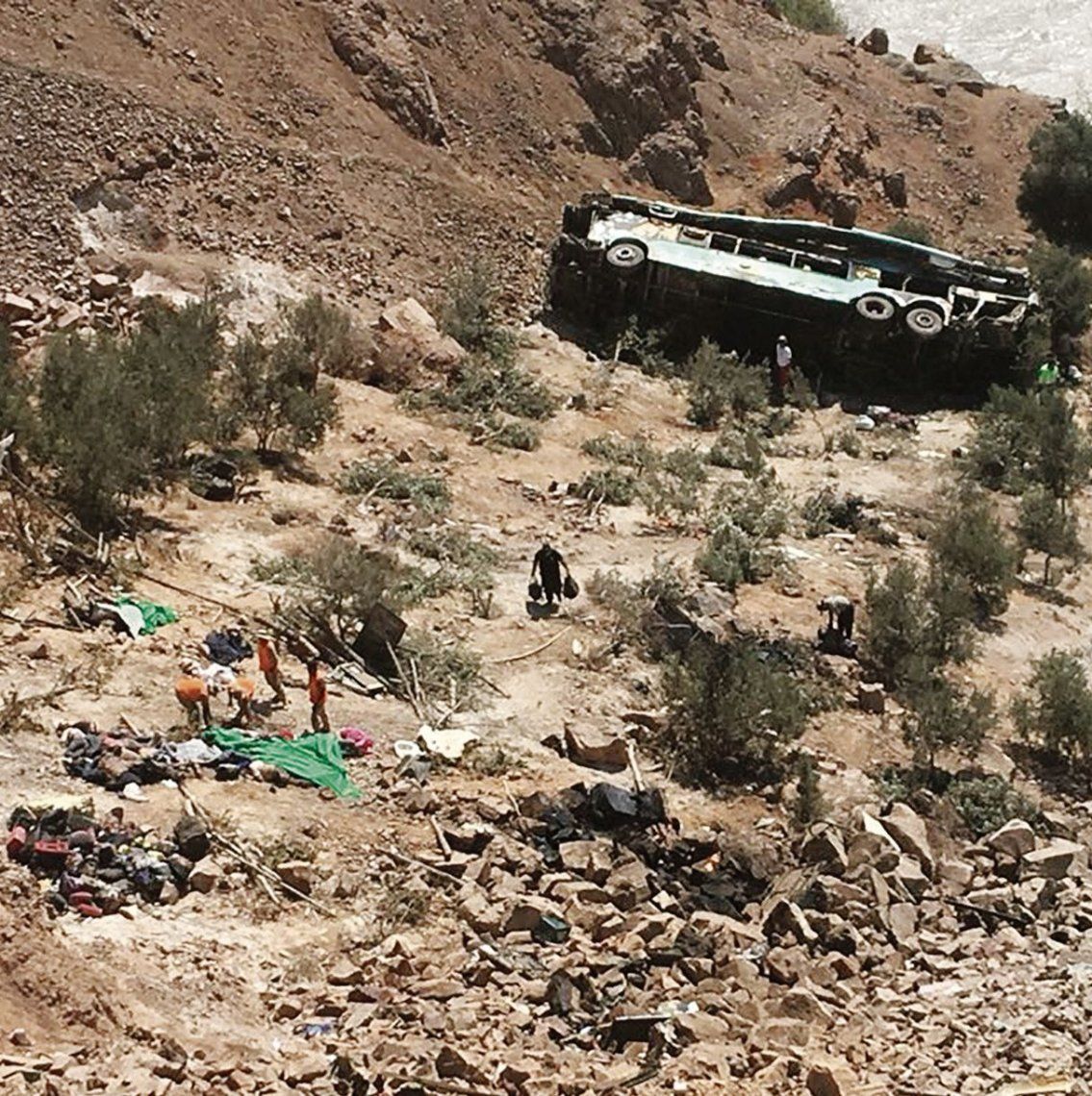 El colectivo se precipitó en una curva pronunciada de la carretera hacia un abismo de unos 200 metros hasta llegar casi a orillas del río Ocoña.