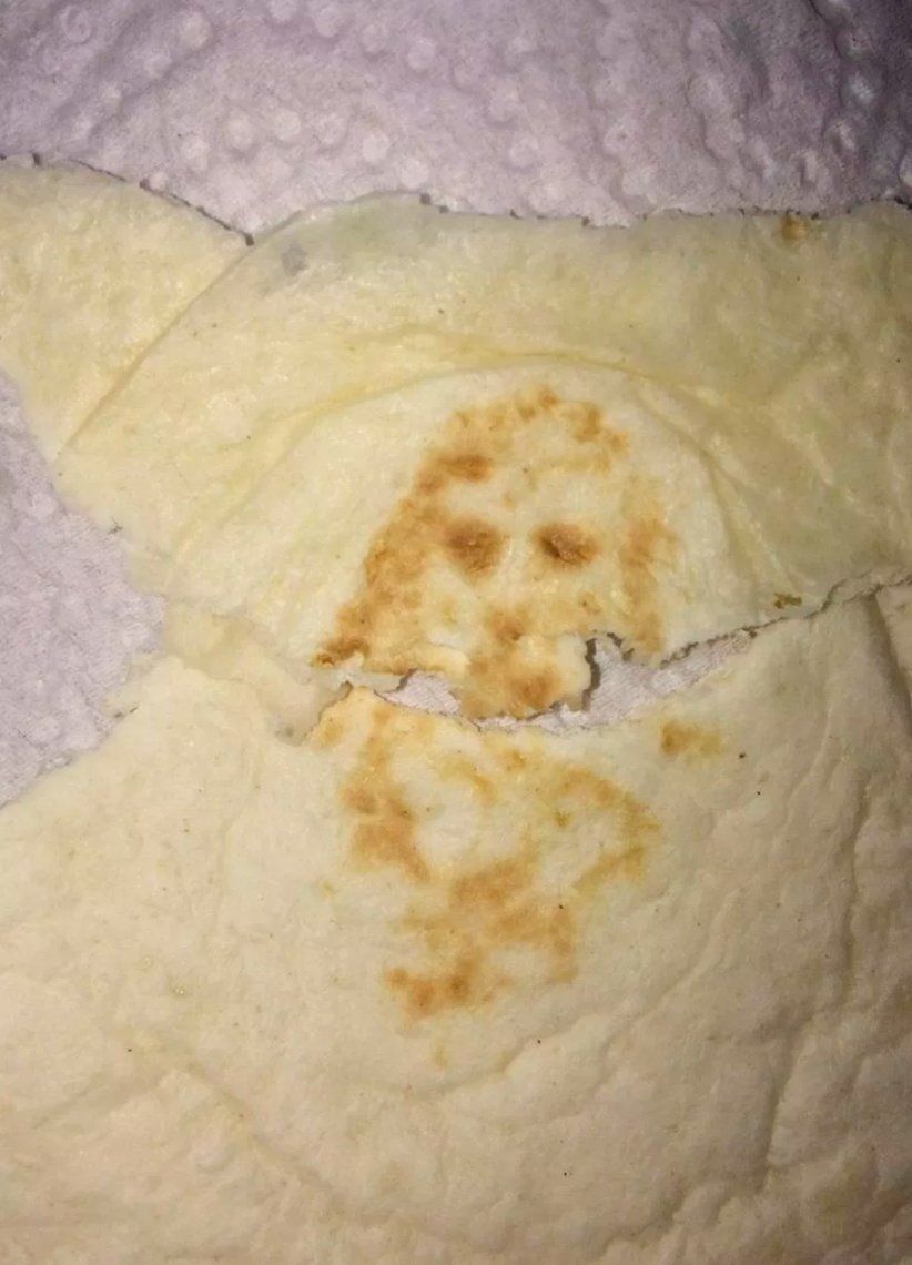 "Noté que sus dos ojos me miraban y decidí instintivamente volver a unir las dos partes. En la mitad inferior, una barba completa. Lo compartí con mis amigos y todos afirmaron que era Jesus", dijo Lucy, quien, finalmente, no se atrevió a comer la tortilla.