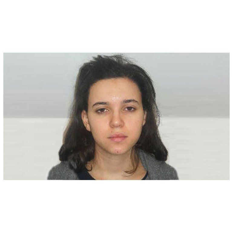 Esta muestra a una mujer de pelo castaño y rostro infantil. La imagen fue tomada en 2010 cuando fue interrogada respecto a Coulibay por la policía. El aviso policial advierte que puede "estar armada" y ser "peligrosa".