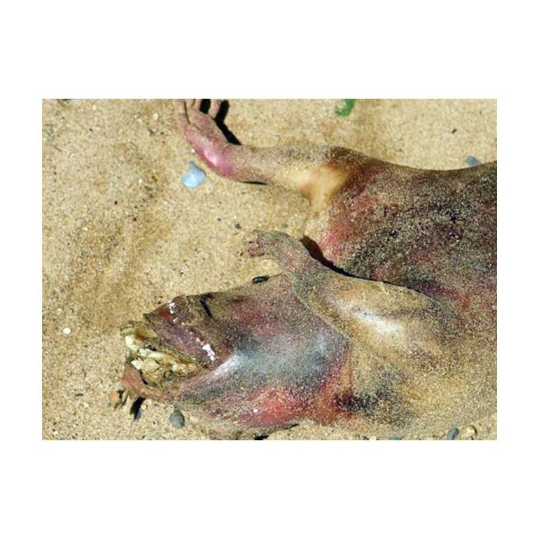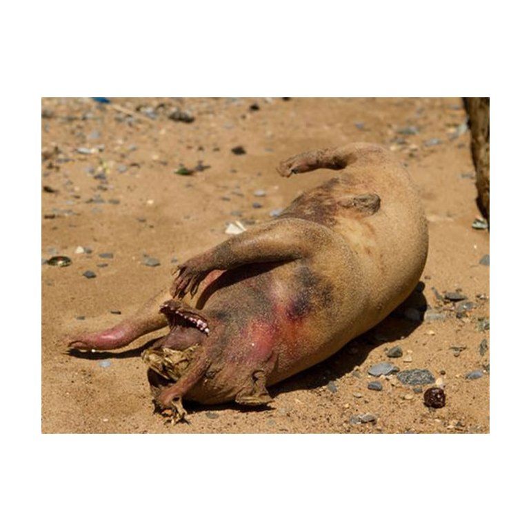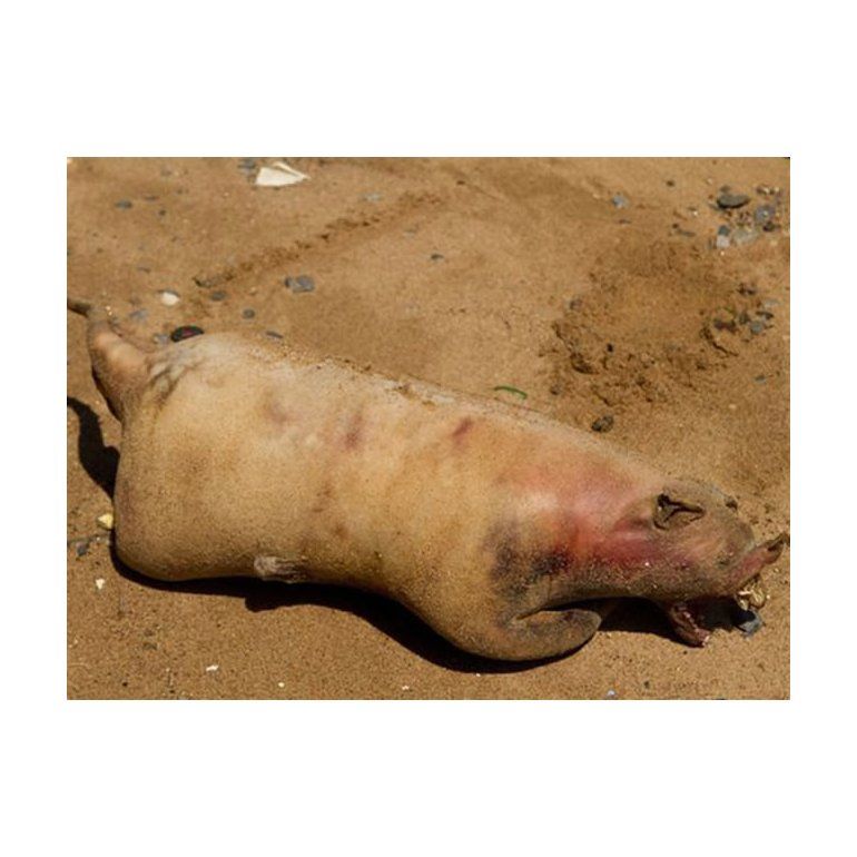 Un impactante animal muerto poco común, sin pelos en el cuerpo y con la