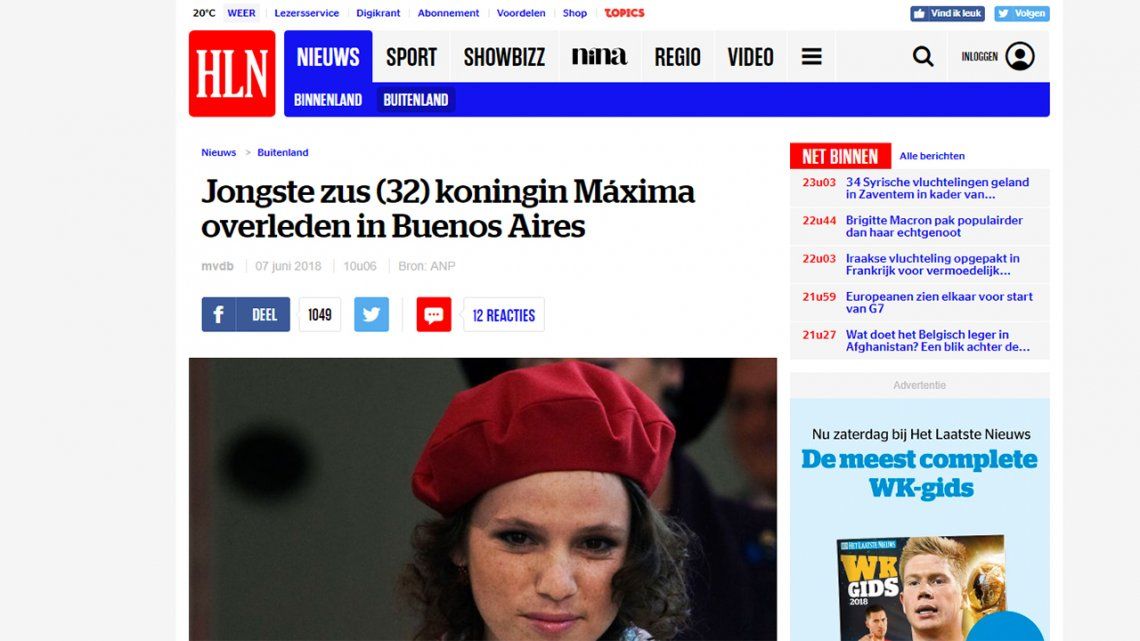 El diario belga Niewus tituló: “La hermana de la reina Máxima murió de repente”, mientras que De Standaard resumió: “Inés Zorreguieta, la hermana más joven de la reina holandesa Máxima, murió a la edad de 33 años en Buenos Aires. El Servicio de Información del Gobierno Holandés confirma que murió presumiblemente por suicidio”.