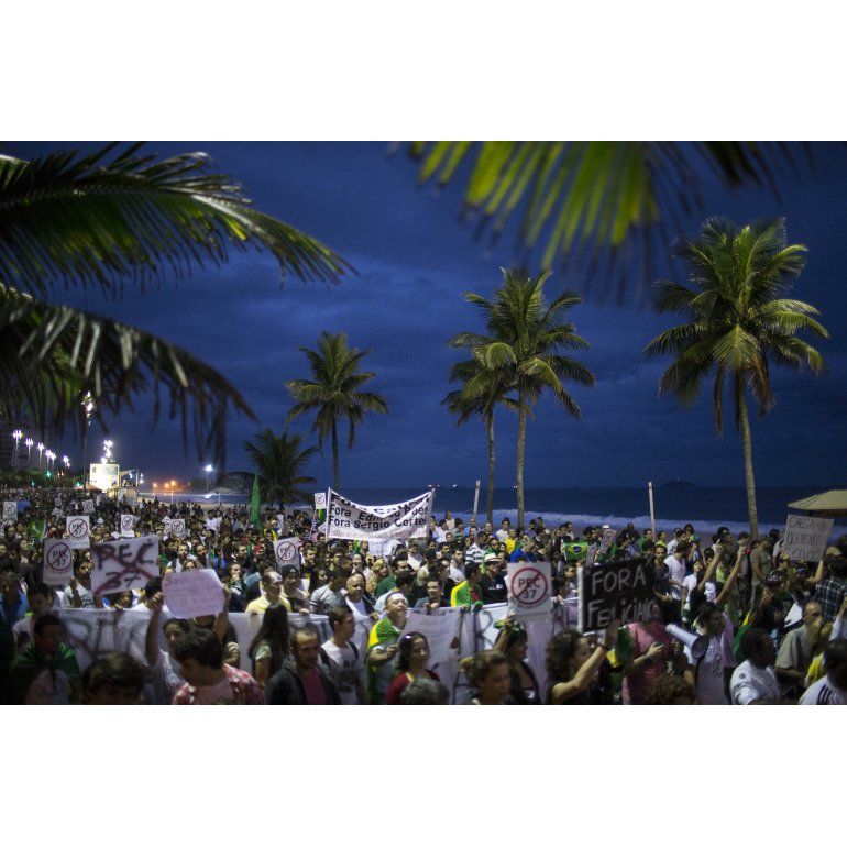 manifestación en las cercanías del Maracaná.
