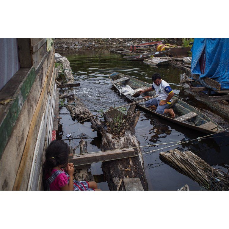 Antonio Lopes da Silva, de 33 años, es uno de ellos. Es pescador y vive con su esposa y cuatro hijos en una de las 106 cabañas flotantes que rodean este lago ubicado en el municipio de Iranduba, cerca de Manaus, en el estado de Amazonas (norte).