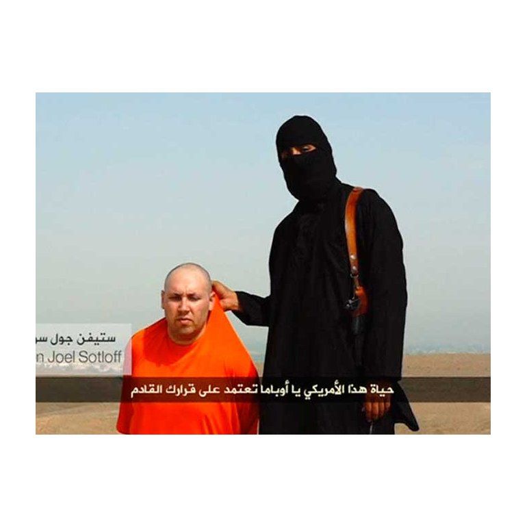 El militante enmascarado condena los ataques estadounidenses en el territorio controlado por el Estado Islámico y decapita a Sotloff.