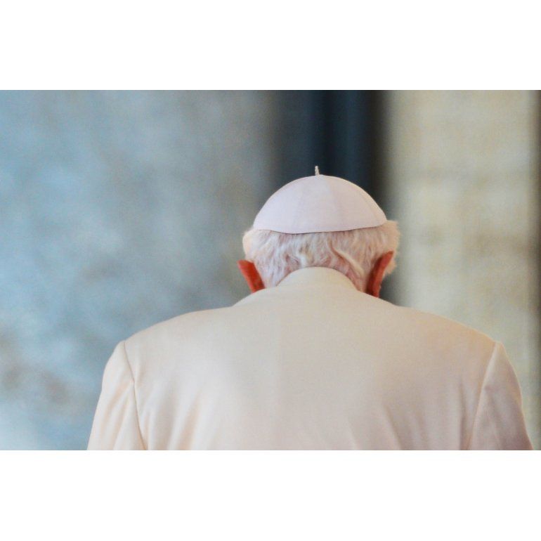 Vestido con su sotana blanca, un color que podrá seguir llevando una vez se haga efectiva su renuncia, el Papa entró al fin en San Pedro a bordo de su papamóvil. En sus 20 minutos de recorrido, durante el que se detuvo varias veces, Benedicto XVI agarraba con fuerza la barra de su vehículo para mantener el equilibrio, mientras le acercaban varios bebés a los que besó con delicadeza.