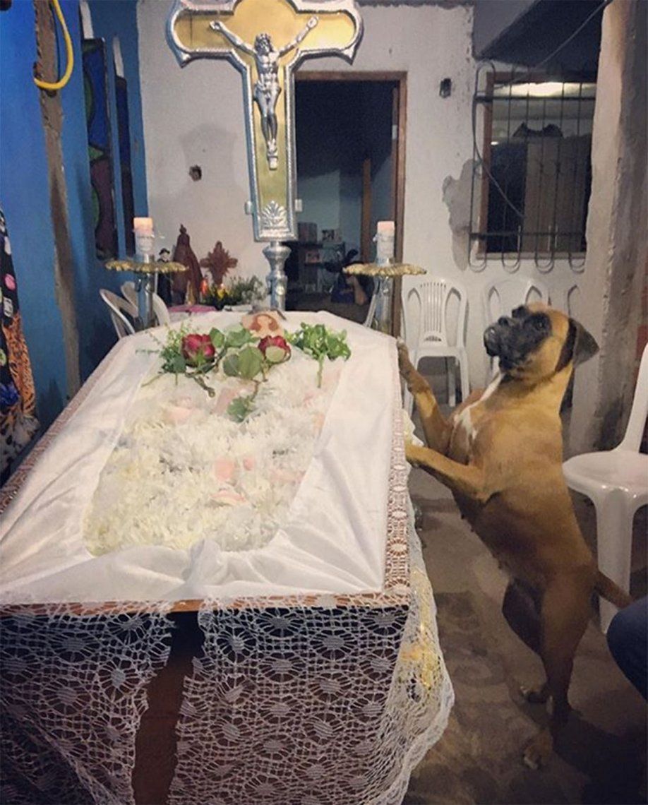Las fotos del can fueron tomadas por el hijo de la difunta, quien las compartió en Instagram y cosechó cientos de likes y comentarios.