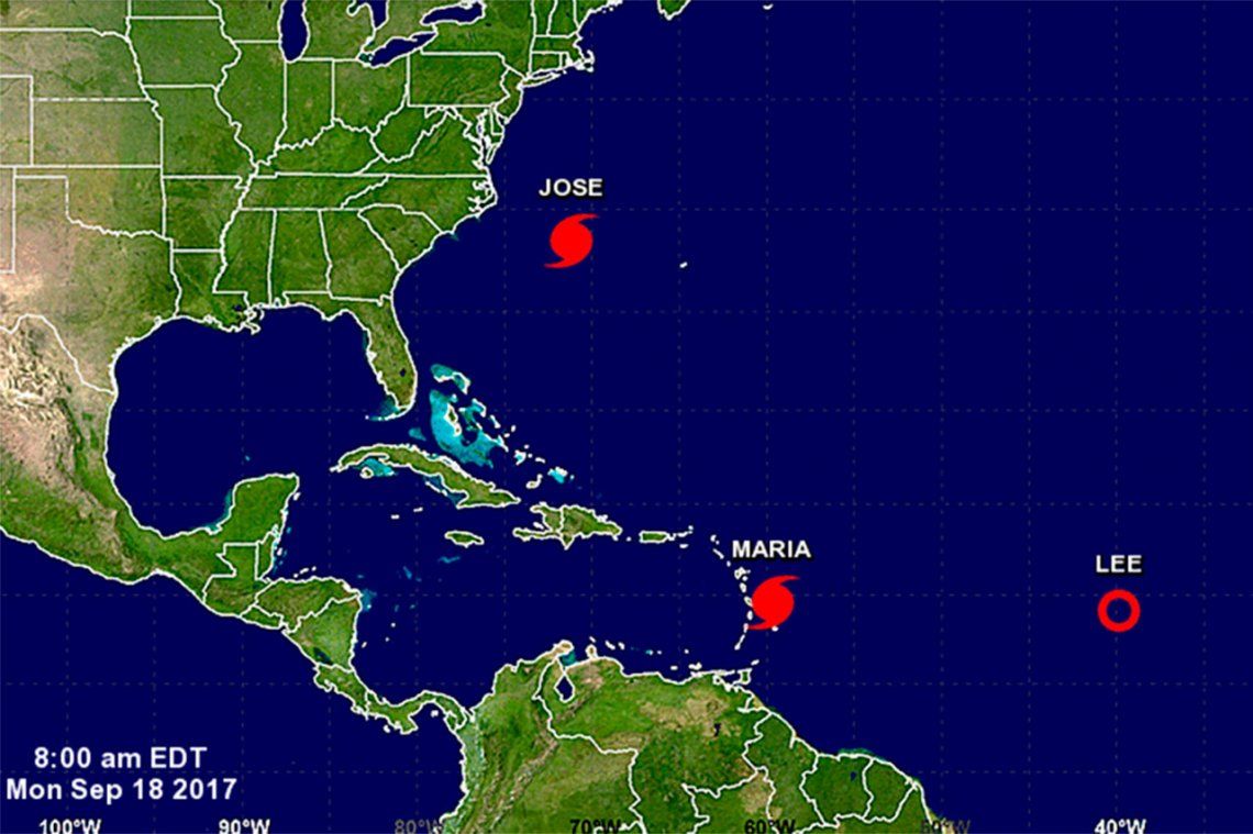 El Centro Nacional de Huracanes de Estados Unidos informó que María tenía vientos máximos sostenidos de 140 kilómetros por hora el domingo por la noche. Su vórtice estaba a unos 165 kilómetros al noreste de Barbados y se movía en dirección oeste-noroeste a 20 kph.