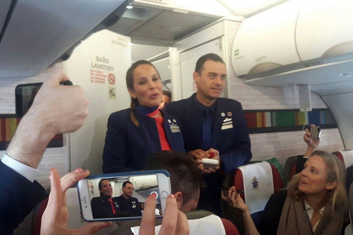 "¿Quieren casarse ahora? Bueno, los caso”, los sorprendió el Papa cuando le contaron la historia. Francisco estaba en el asiento 1A, la mujer en el 1B y su marido en el 1C.