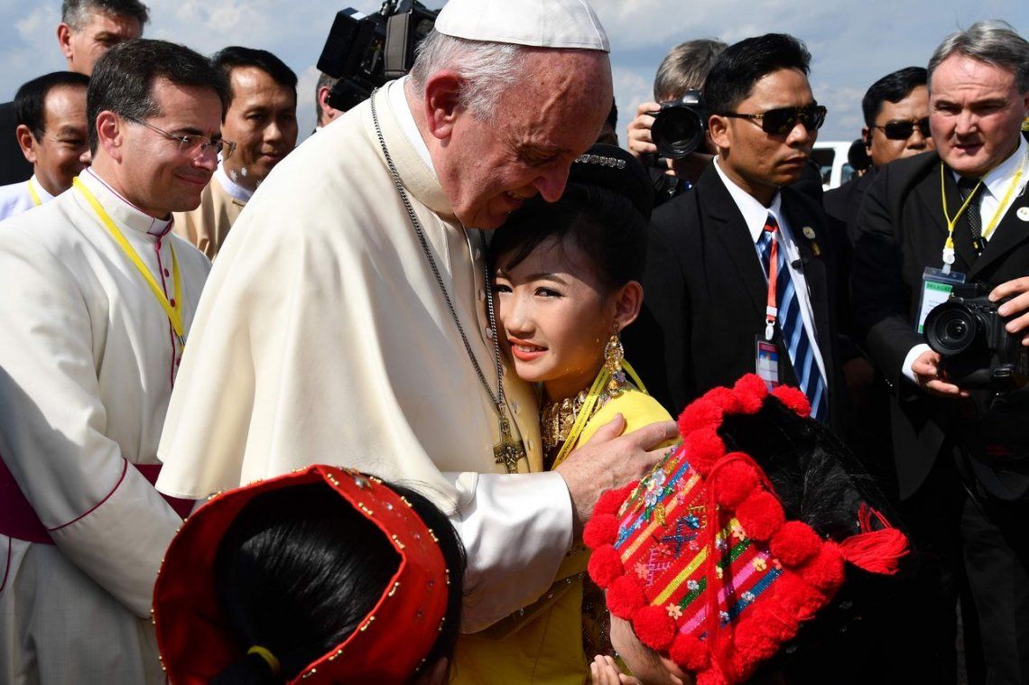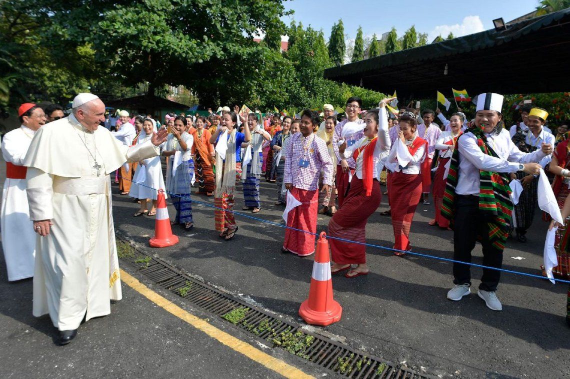 Acogido por miles de birmanos con atuendos tradicionales, el papa Francisco comenzó este lunes en Birmania una visita particularmente delicada, iniciada por un encuentro con el jefe del ejército, acusado de llevar a cabo una “limpieza étnica” de la minoría musulmana rohinyá.