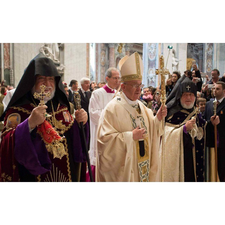 En una ceremonia histórica, respetuosa de las tradiciones religiosas armenias y cargada de un enorme valor político, el papa Francisco recordó en el Vaticano "el centenario de aquel trágico evento, de aquel atroz y descabellado exterminio" del pueblo armenio, al que calificó como "el primer genocidio del siglo XX".