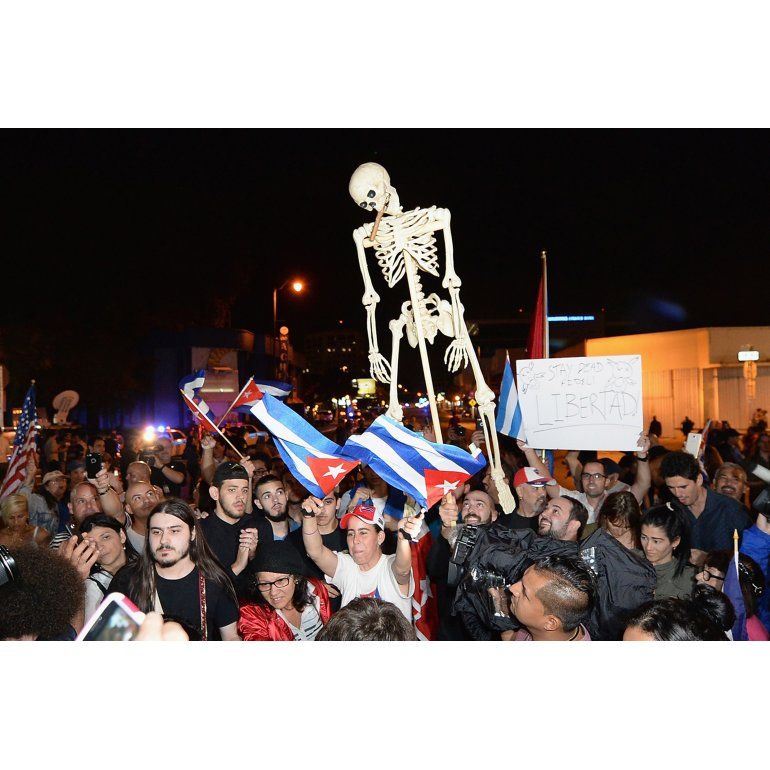 Mientras tanto, varios de los manifestantes lanzaron fuegos artificiales y otros hicieron sonar insistentemente las bocinas de sus automóviles. Los dirigentes de las organizaciones de exiliados cubanos no se hicieron ver en los alrededores del Versailles -un café ambientado como los de La Habana precastrista- ni respondieron consultas periodísticas.
