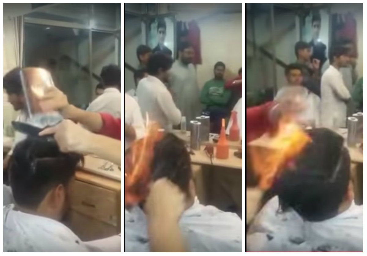 El método utilizado por el profesional es sencillo para describir: el cliente se sienta en la barbería y, en lugar de unas tijeras, el coiffeur usa un producto inflamable para rociarle el cabello y luego lo prende fuego.