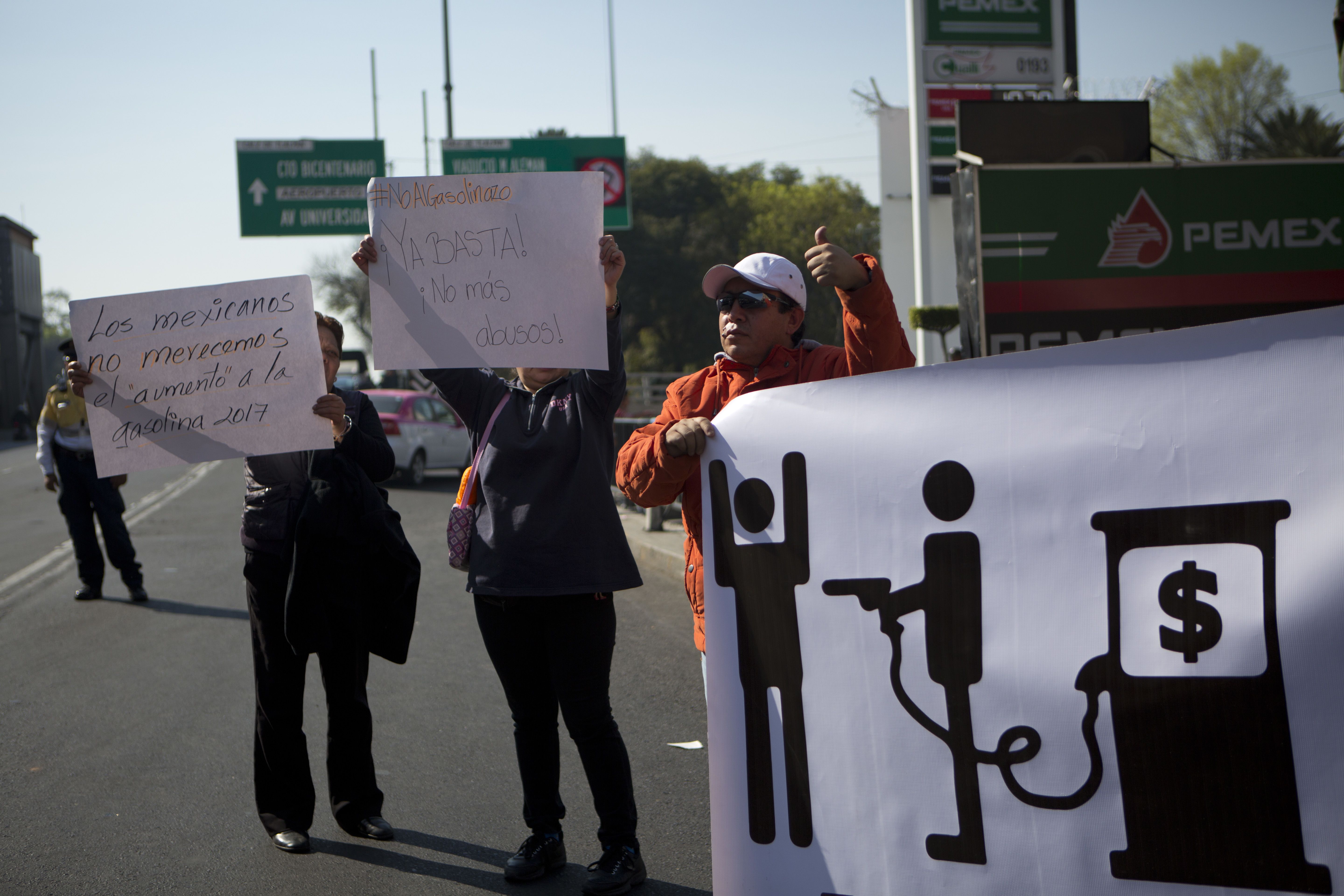 8-En respuesta a los aumentos, integrantes de distintas organizaciones se reunieron el primer día del año para protestar por el llamado "gasolinazo". Otros grupos se manifestaron bloqueando las principales autopistas, lo que generó caos vehicular en ambos sentidos de la vialidad. Además, en las últimas horas se produjeron varios saqueos.