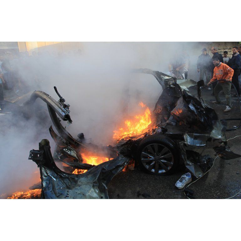 Según los testigos, un proyectil aire-tierra procedente de un aparato de combate israelí impactó sobre el vehículo, que quedó calcinado.
