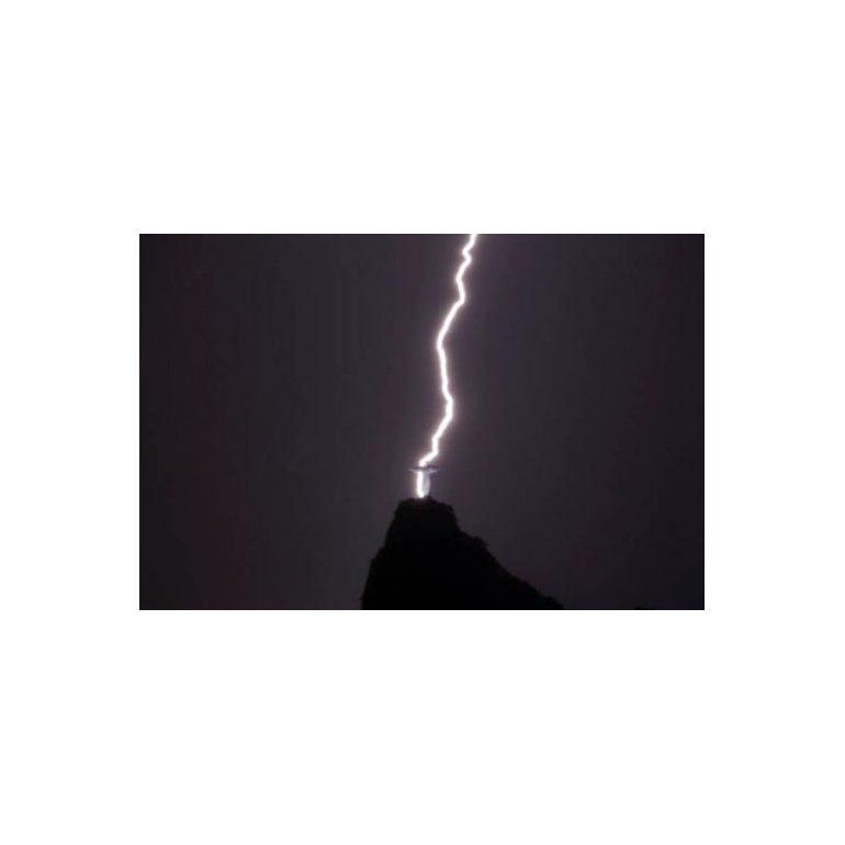 El Cristo Redentor, una de las Siete Maravillas del Mundo y monumento emblemático de la cultura carioca, parece atravesado por un rayo.