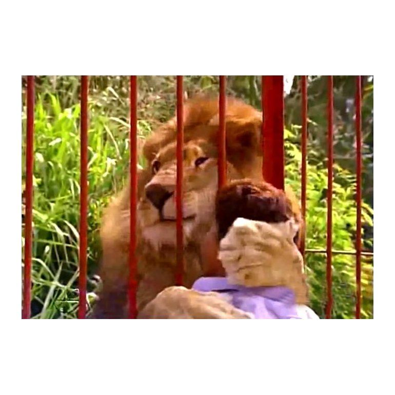 Increíblemente, el león Júpiter la reconoció e incluso le prodigó varios abrazos con sus fuertes garras y sin comprender, quizá, la existencia de esos barrotes que lo separaban de su salvadora.