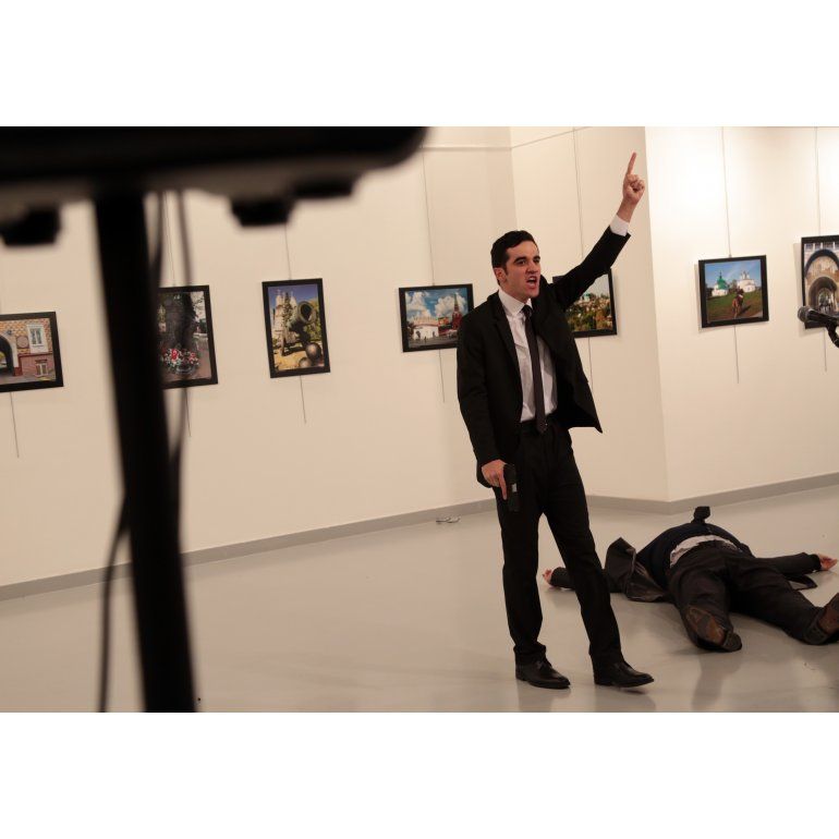 Andrey Karlov, el representante de Rusia en el país turco, lo atacaron mientras presentaba una muestra de fotos en Ankara. En el video se ve el momento del impacto y la cara del asesino. LAS IMÁGENES PUEDEN HERIR SU SENSIBILIDAD.