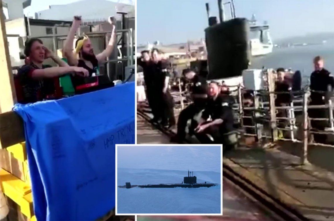 Imágenes difundidas en las redes sociales muestran a miembros de la tripulación del “HMS Trenchant” celebrando con música tecno de fondo, después de llegar a la base naval de Devonport, en Plymouth tras meses de maniobras en el mar.
