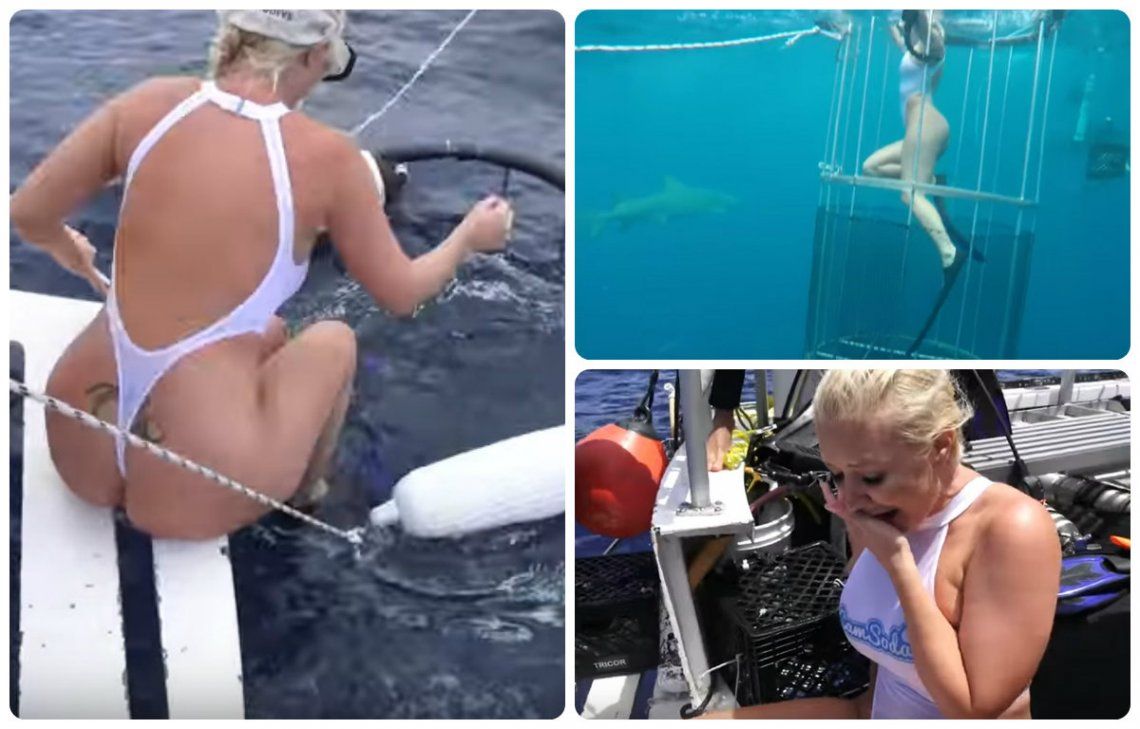 Cavalli, reconocida estrella dentro del mundo del cine XXX, se sumergió dentro de una jaula para realizar las escenas, pero la misma no soportó el embate del violento pez.