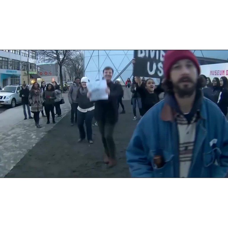 El actor de las tres primeras películas de la saga Transformes, Shia LaBeouf, protagonizó un tenso momento en una manifestación organizada contra el presidente de EEUU, Donald Trump.