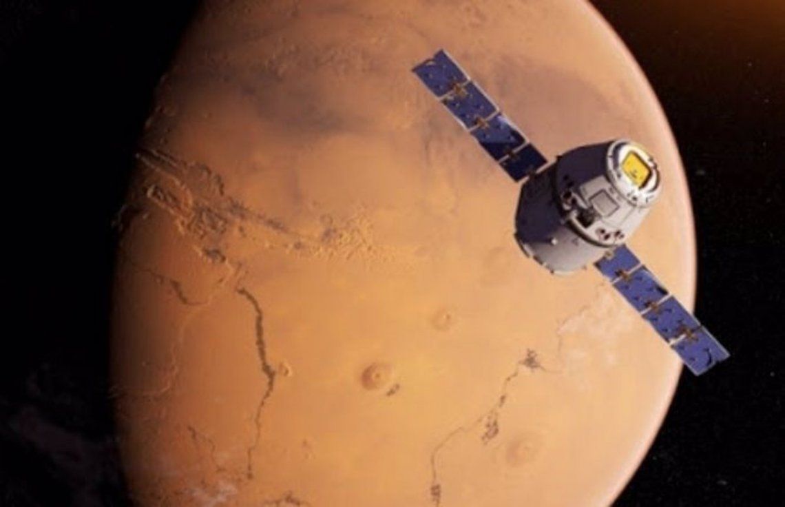 El texto detalla que la misión planea "orbitar, aterrizar y patrullar Marte".