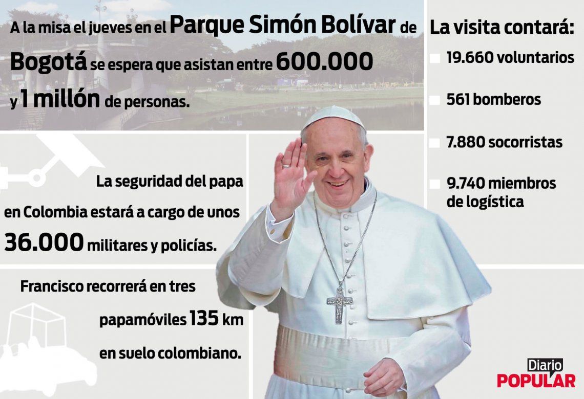 • La seguridad del papa en Colombia estará a cargo de unos 36.000 militares y policías.