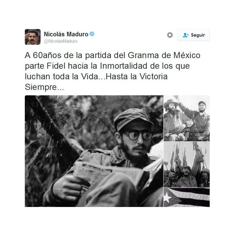 "Nuestra admiración y respeto por Fidel, el líder que nos enseñó a luchar por la soberanía del Estado y la dignidad de los pueblos del mundo".