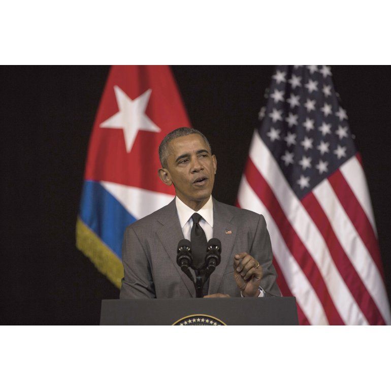 El presidente de Estados Unidos ofrece un discurso al pueblo cubano en el teatro de La Habana. Dijo que visitó el país para "extender la mano de la amistad al pueblo cubano".