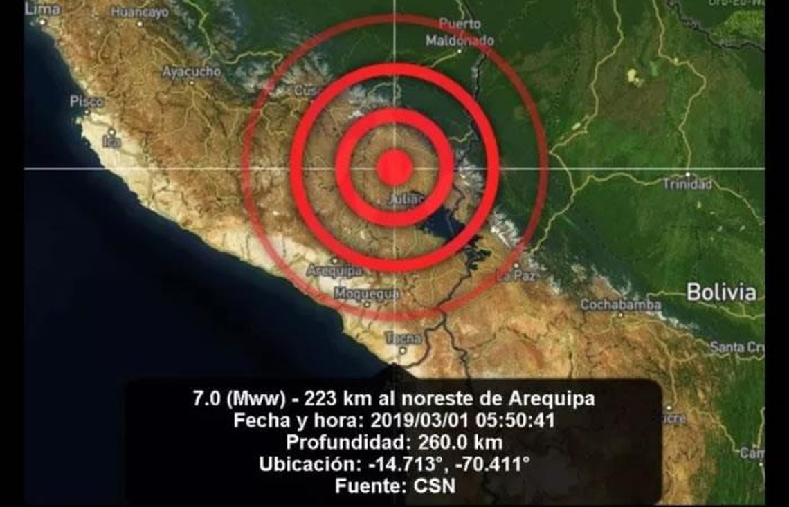 El movimiento sísmico se produjo a las 7:02 hora local, con epicentro a 20 kilómetros de Ayaviri, en la región de Puno, fronteriza con Bolivia, a una profundidad de 240 kilómetros, detalló el Centro Sísmico Nacional del Perú.