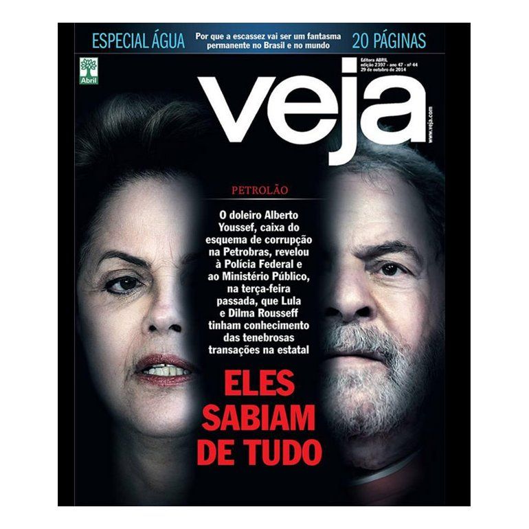 La publicación, sin citar ninguna fuente, publica una declaración que le atribuye al cambista Alberto Yousseff, quien fue preso por el escándalo de corrupción con la estatal Petrobras y quien habría reconocido ante la Policía que "Dilma y Lula sabían de todo", una frase que llevó a su portada con impactantes fotos de la presidenta y su antecesor.