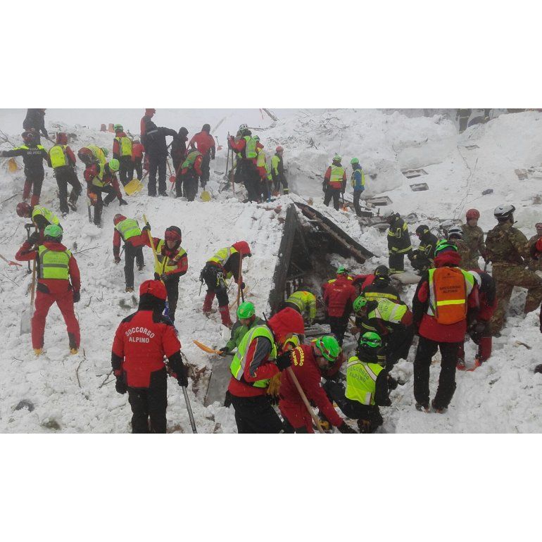 Los rescatistas italianos continuaban ayer buscando sobrevivientes bajo los escombros de un hotel devastado por una avalancha el pasado miércoles en el centro de Italia, en condiciones extremas.