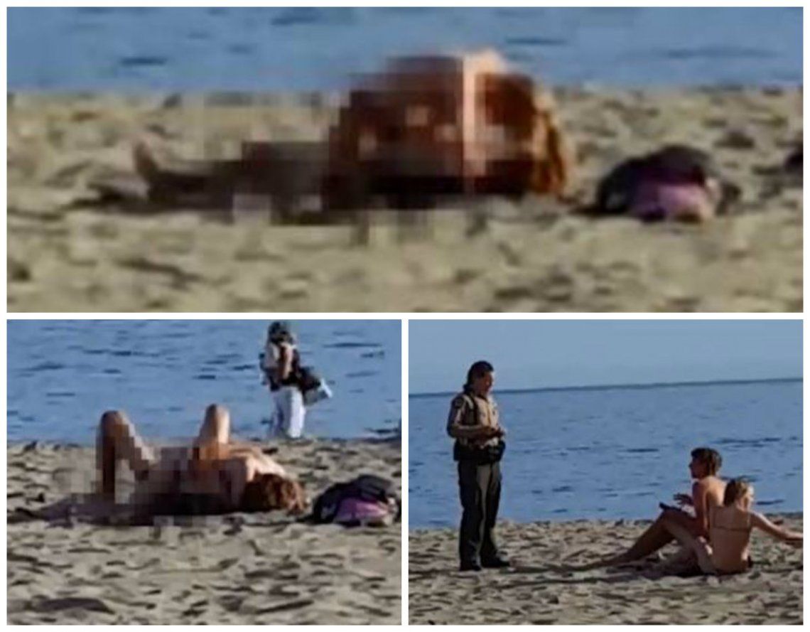 Dos amantes decidieron dar rienda libre a su pasión en medio de una playa de California, Estados Unidos, pero su escena hot fue interrumpida por un policía que los reprimió por su conducta inapropiada en medio de un espacio público.
