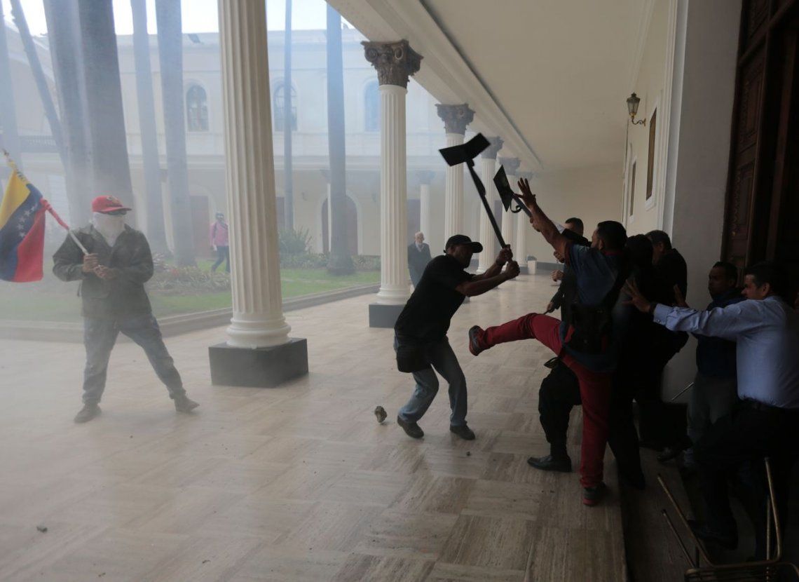 Los agresores-muchos vestidos de rojo y armados con palos y artefactos pirotécnicos- asaltaron la sede del Legislativo durante una sesión conmemorativa de los 206 años de la independencia venezolana, celebrada por los opositores que controlan la Cámara.
