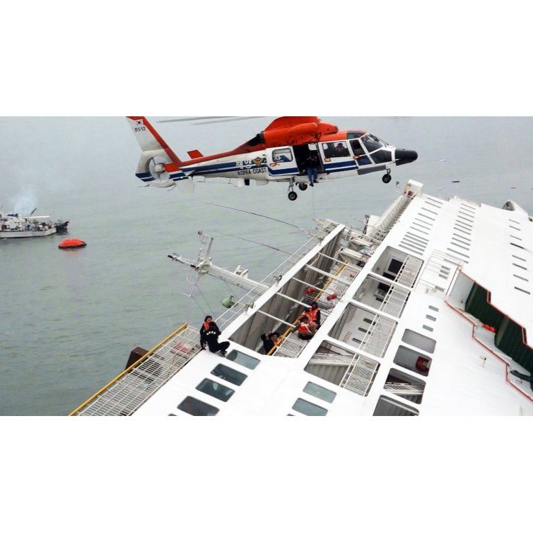 La televisión mostró imágenes aéreas de los pasajeros con chalecos salvavidas en botes hinchables huyendo del ferry. Algunos bajaban deslizándose por el casco del barco totalmente inclinado mientras otros eran rescatados por pequeños botes de pescadores.