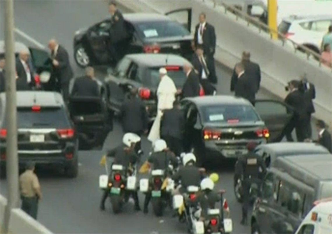 Mientras iba por una avenida que une el aeropuerto con el centro de Lima, el auto en el que se trasladaba el máximo exponente de la Iglesia Católica frenó su marcha, y se bajó del vehículo. Rápidamente, la custodia se desplegó por los alrededores y el Papa se subió a otro coche para continuar su recorrido.