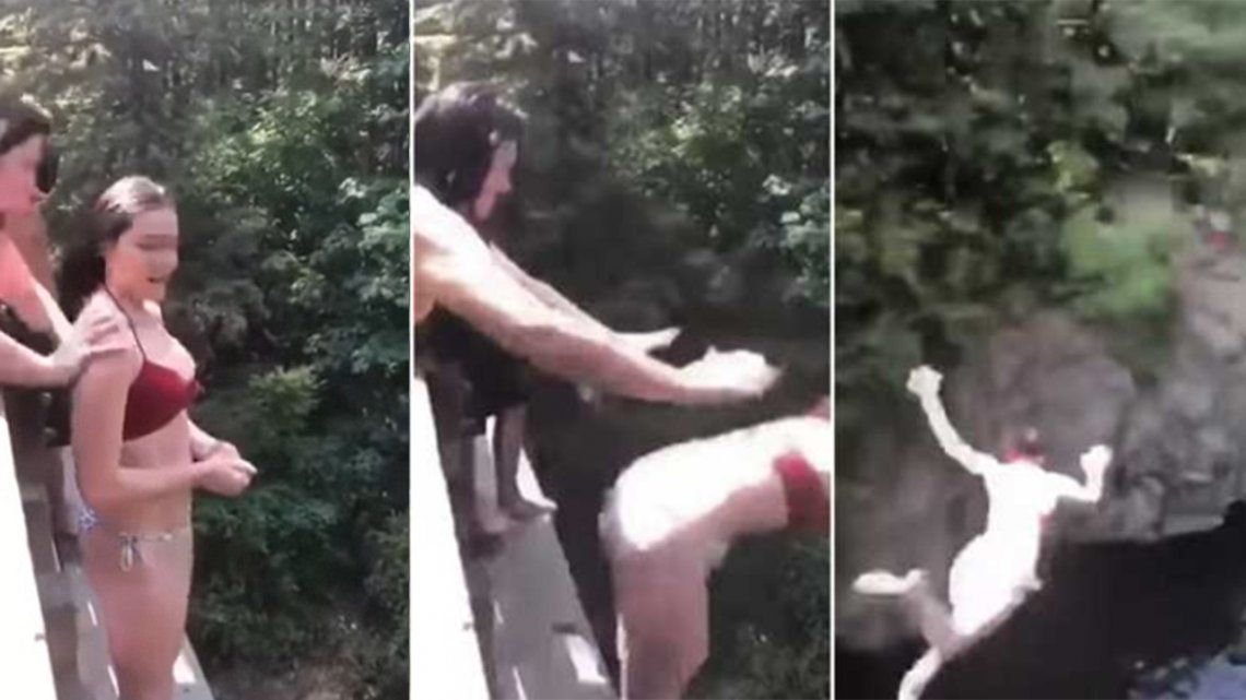 La adolescente dudaba entre saltar y no saltar, y en pleno momento de incertidumbre una amiga la empujó directo al vacío.